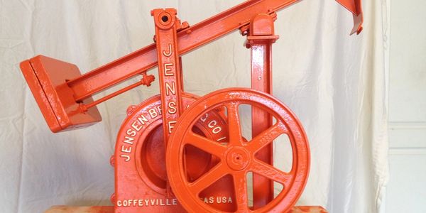 The Jensen 13W Pump Jack has become a novelty with many companies in the oil and gas industry. Originally built for water well service, many producers and collectors are using these as art pieces in their office lobbies and public arenas. These units were built from the mid 1950's to the early 1970"s. They are about 3' long and 3' high and weigh about 160#. We have bought and sold these units to various individuals and companies throughout the USA and Canada. We are proud to have one of our units displayed at the Oklahoma Historical Museum in OKC and the Jasmine Moran Children's Museum in Seminole, OK.